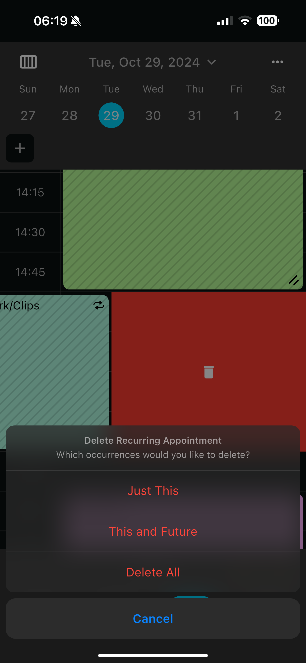 If you open a task to start a new task and then realize you need to delete recurring task before completely removing the open one. The pop up comes up behind the new edit window and then goes away and you get stuck typing in an inactive edit window and can’t click away. It deletes the task but unclear if it chooses to delete all of them or just that one since you didn’t select.